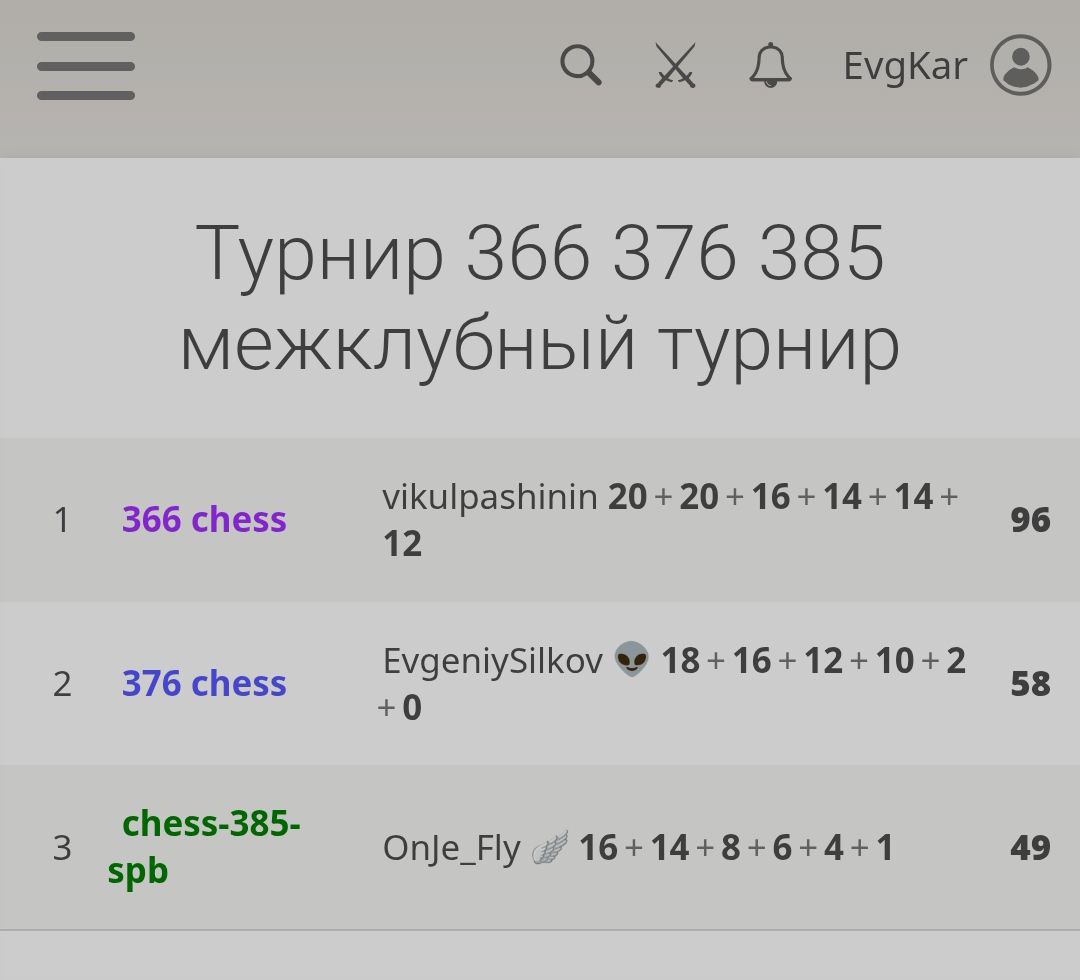 Командный зачет по 6 лучшим игрокам.